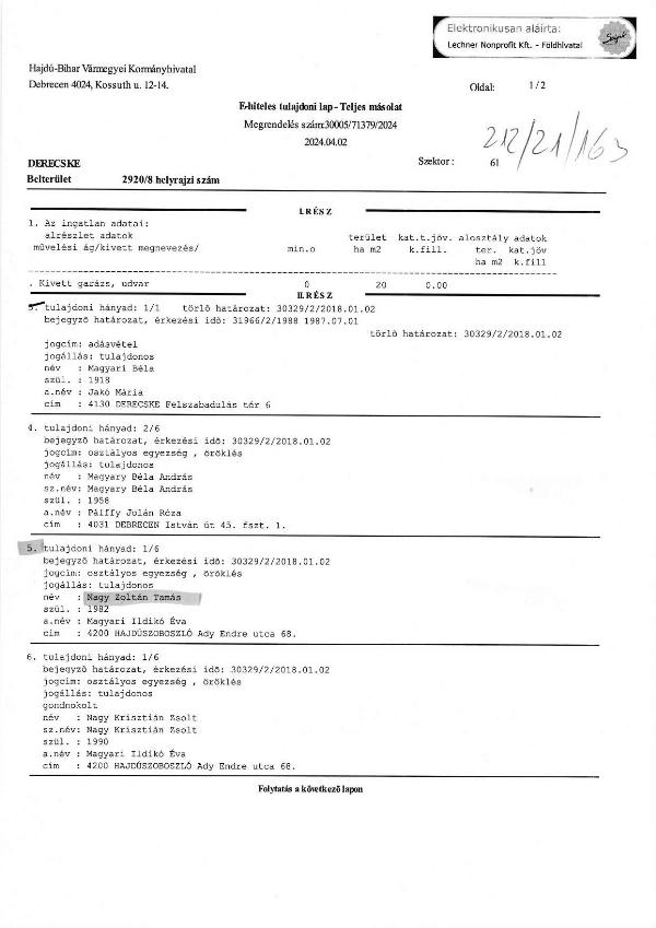 Tulajdoni hányad | 1/6 (17%) |