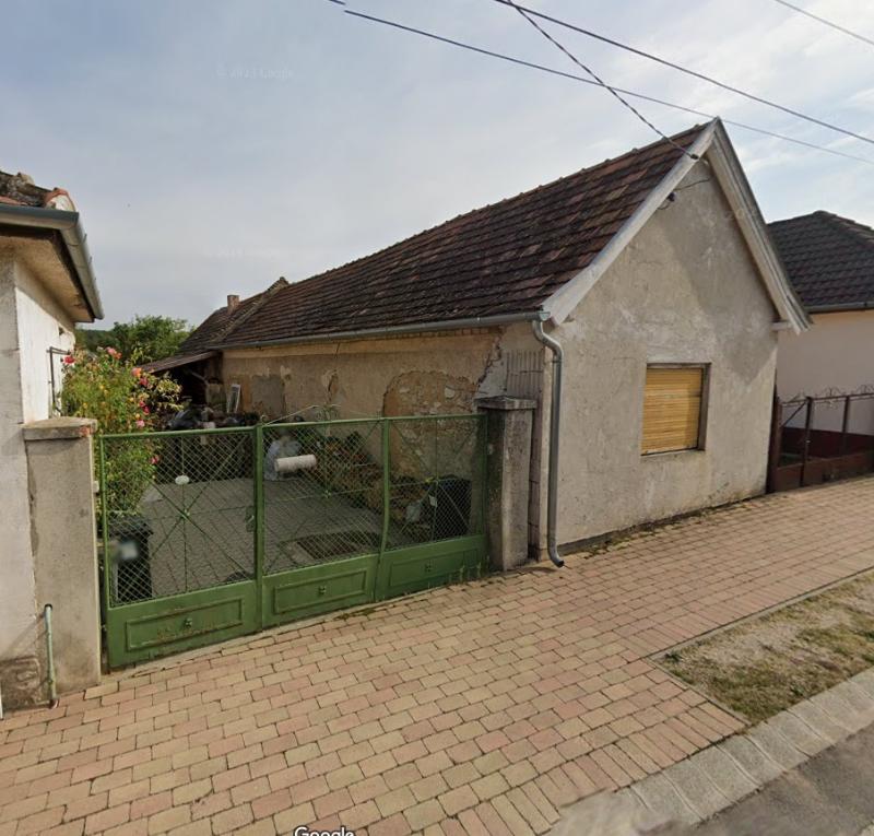 Tulajdoni jelleg: személyi tulajdon, Fekvése: belterület, Megközelíthetősége: kiépített-pormentes út, Rendeltetése: lakóház-udvar, Megjegyzés: az ingatlan lakóingatlannak minősül, Jellemzők: egyemeletes, készültségi foka:100%,Alapozása: nincs, Falazata: kő, Tetőszerkezet-héjazat anyaga: cserép- rossz állapotú, Életkora: kb.125 év, állapota: bontásra érett, alapterülete: 35 m2, Épületben levő lakások száma: 1 darab, Helyiségek: 1 szoba, 1 konyha, A helyiségek padlóburkolata: beton, Fűtése: egyedi, fatüzelésű kályha, Közmevesítettsége: villany Melléképület: kamra, istálló a ház vonalában, azzal összeépítve, anyaga: kő, bontásra érett. E.ON vezetékjoggal terhelt