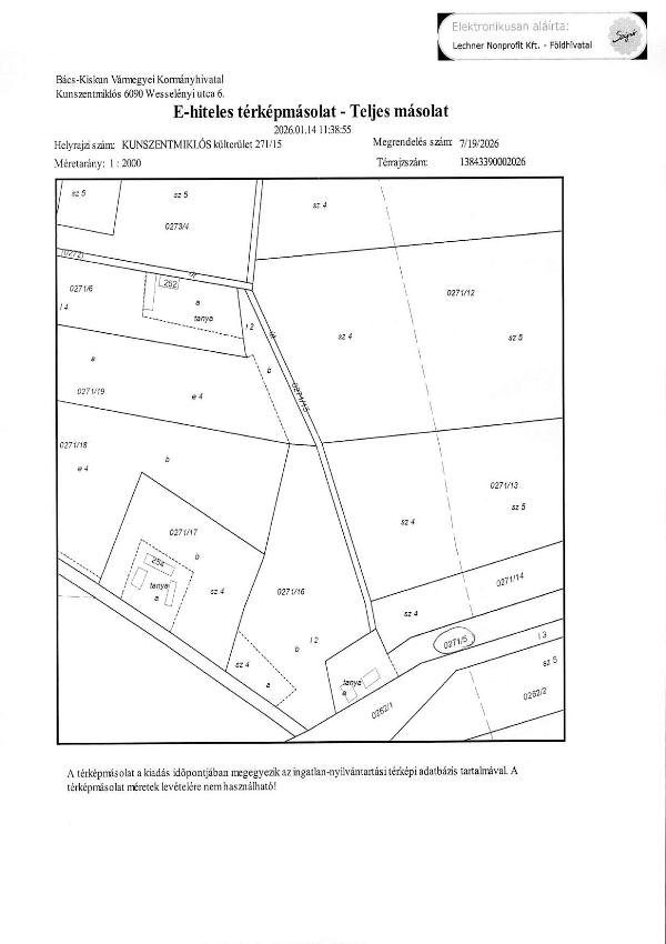 | Cím | 6090 Kunszentmiklós, Kült. 0271/15 Hrsz |