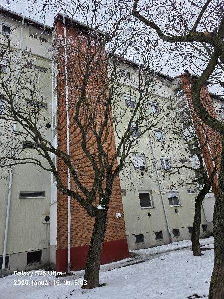 Lakás 51 m2. Társasház, az önálló ingatlanhoz tartoznak az alapító okiratban meghatározott helyiségek. Eszmei hányad: 310/10000. Az ingatlan összközműves (víz, villany, csatorna, gáz). Fűtése gázkonvektor. Többszintes társasház első emeleti lakásingatlana. Alapozása vasbeton sáv- és pontalapok, falazata tégla, utólagos hőszigeteléssel ellátva, tetőszerkezete vasbeton lapos tető. Állapota felújításra szorul. Életkora kb. 60 év. 2 szoba, konyha, előszoba, fürdőszoba, WC, kamra, erkély. Nyílászárók eredeti fa ablakok, ajtók. Konyhabútor hiányzik. Konyhában a konvektor leszerelésre került. A fürdőszobában, WC-ben és a konyhában leázás nyomai láthatóak. A lakáshoz az alagsorban külön zárható tároló tartozik. Az ingatlan a Vht. 147. § (4) bekezdése szerint lakóingatlannak minősül.