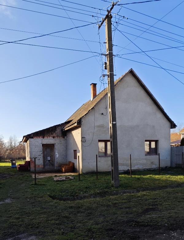2/4 tulajdoni hányad, telek: 1390 m2, épület: 60 m2, helyiségei: 1 szoba, 1 félszoba, konyha, fürdőszoba, WC, előtér, közművek: vezetékes víz, villany, csatorna, fűtés hegyományos