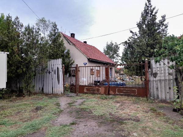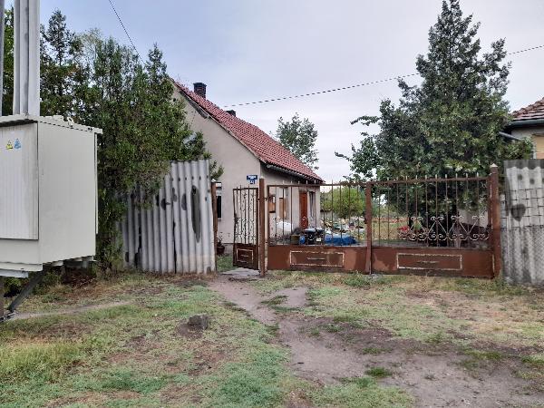 Kivett lakóház, udvar. Területe 934 m2. Kiépített pormentes út mentén megközelíthető, lakóház. Földszintes, készültségi foka 100%, alapozása beton, szigetelése alap, falazata tégla, tetőszerkezete gyenge állapotú cseréptető. Életkora 24 év. Alapterülete 56 m2. Helyiségei: 1 amerikai konyhás nappali, 2 félszoba, 1 fürdőszoba +wc, 1 kamra. Padlóburkolat, járólap, PVC. Fűtése: hagyományos: fa, szén. Közművesítettség: villany, víz kikötve.