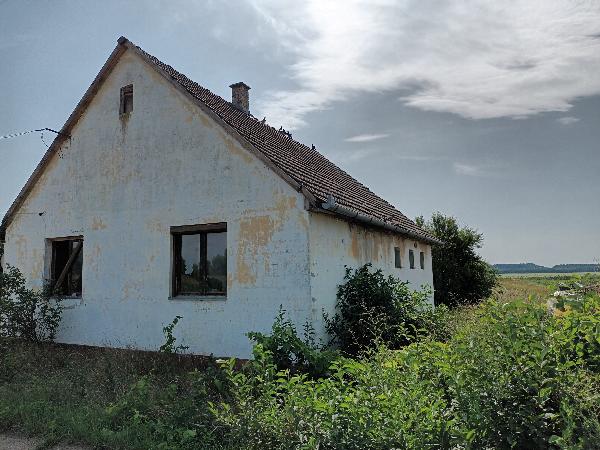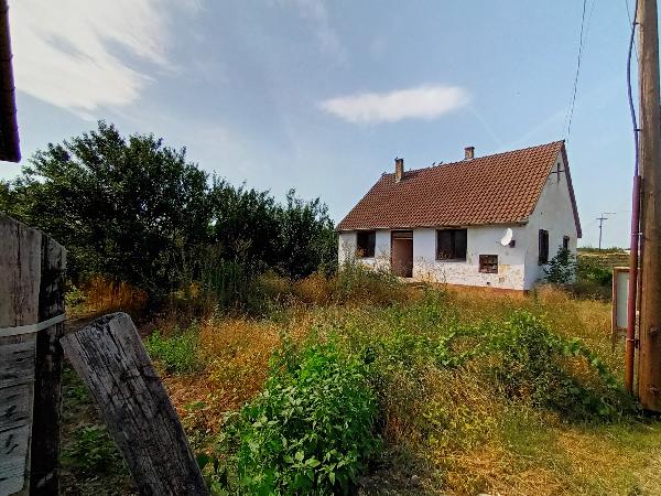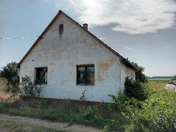 Kivett lakóház, udvar. Területe 2011 m2. Kiépített pormentes út mentén megközelíthető földszintes lakóház melynek készültségi foka 100%, alapozása beton, szigetelése teljes értékű, falazata tégla, tetőszerkezetének hélyaza cserép. Életkora 34 év, állapota közepes, alapterülete 85 m2. Helyiségei: 2 szoba, 1 konyha, 1 kamra, 1 fürdőszoba, folyosó és wc. Fűtése hagyományos. Közművesítettsége: villany.