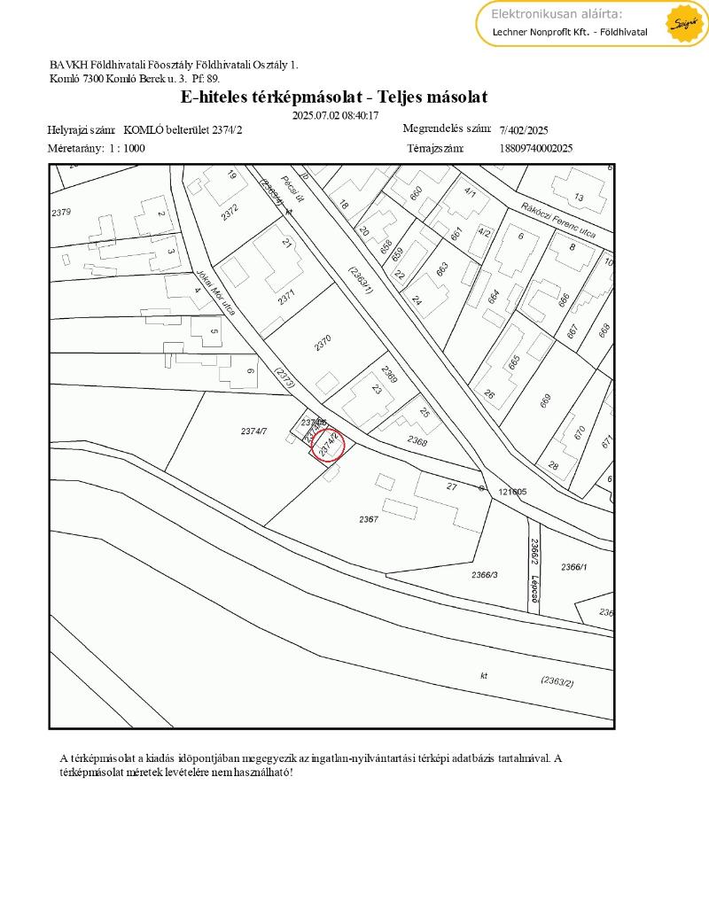 | Helyrajzi szám | 2374/2 |