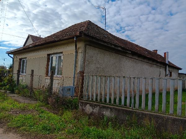 Az ingatlan jellege:kivett lakóház, udvar, gazdasági épület, Területe:2577 m2, Megközelíthetősége: kiépített, pormentes út, Földszintes, Alapozása:beton, Szigetelés nincs, Falazata:vályog-tégla, Tetőszerkezet:cserép, Életkora: 55 év, Állapota:jó, Helyiségek száma:2 szoba, 1 fürdőszoba, 1 előszoba, 1 nappali+konyha, 1 WC, 1 mosókonyha, Helyiségek padlóburkolata: csempe, laminált parketta, Fűtése: gáz, egyedi központi fűtés, Közművesítettsége: vezetékes víz, gáz, villany,csatorna. Az ingatlanról készült fényképfelvétel tájékoztató jellegű.