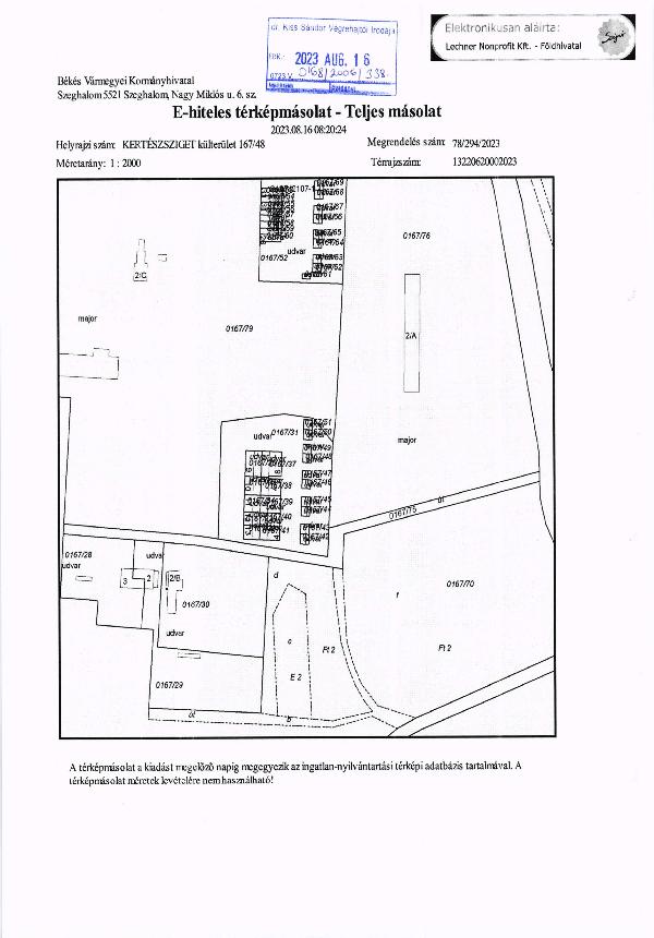 4306 m2 alapterületen kivett udvar (tulajdoni jellege: személyi; fekvése: külterület; megközelíthetősége: földes út). Az ingatlanról készült képfelvételek tájékoztató jellegűek, licitálás előtt az ingatlan megtekintése ajánlott. Földhasználati nyilvántartásba bejegyzett földhasználó nincs. A Vht. 143. § (1) bek. h) pontja alapján előárverezési jogát az árverés kitűzéséig irodám részére senki nem igazolta. A végrehajtói irodának nincs információja arról, hogy az árverés alatt álló ingatlan vonatkozásában vízkorlátozás, vízdíjhátralék vagy közműfejlesztési hozzájárulás megfizetési kötelezettsége áll-e fenn, így az ajánlattétel előtt vegye fel a kapcsolatot az illetékes vízközmű-szolgáltatóval. Tájékoztatom a Feleket arról, hogy a Kúria a BH 2019/307. számú határozatában foglaltak alapján nem kötelezhető a víziközmű-szolgáltató mindaddig a közüzemi szerződés megkötésére az ingatlan új tulajdonosával, amíg a fogyasztási helyet lejárt határidejű, vagy vitatott díjtartozás terheli, függetlenül attól, hogy az igénybejelentő az ingatlan tulajdonjogát származékos, vagy eredeti szerződésmóddal (árverés útján) szerezte meg.