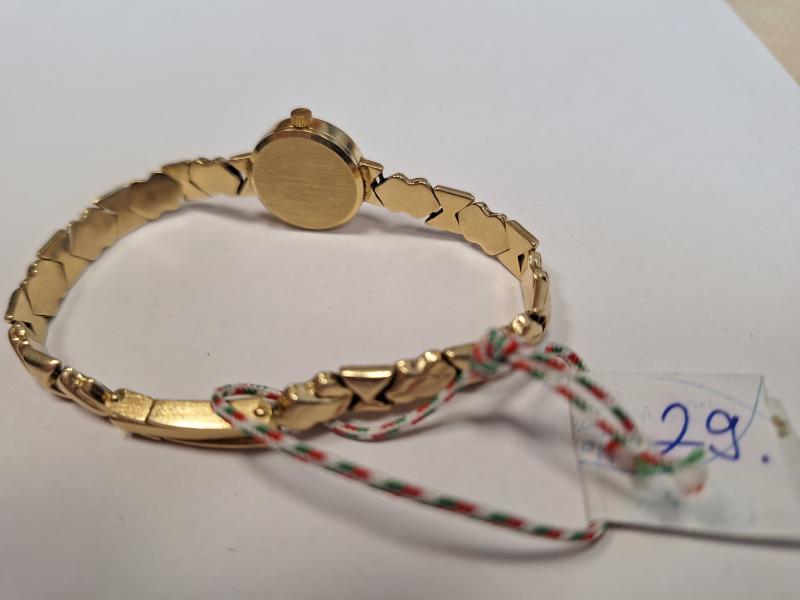 1 db 585 ‰ (14 karát) finomságú aranyötvözetből készült,Vicence feliratú, analóg kvarc, női ékszeróra, karkötővel.Olasz eredetű, 1999 és 2006 közötti szabályos magyar behozatali fémjelzéssel ellátva. Aranytárgynak minősül. Használt, kopott, üzemképtelen állapotban. Az ingóság MEGTEKINTÉSE az árverésen történő részvétel előtt a meghirdetett időpontban ajánlott.Az elárverezett vagyontárgyakért sem az adós,sem az adóhatóság jótállással nem tartozik,felelősséget nem vállal.A megtekintés során a résztvevők által nem észlelt vagy fel nem ismerhető rejtett hibákért,a vagyontárgy esetlegesen előforduló vélt vagy valós hiányosságaiért az adóhatóság felelősséget nem vállal.