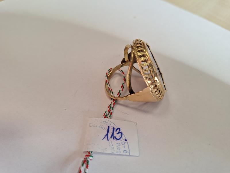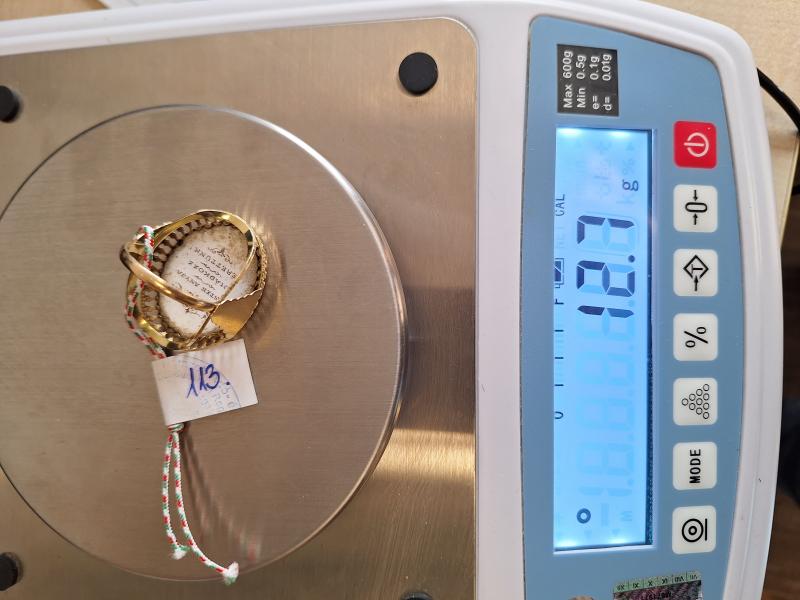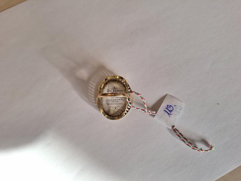 1 db 585 ‰ (14 karát) finomságú aranyötvözetből készült,női gyűrű. Szűz Máriás porcelán szentképpel. 2006 és 2016 közötti szabályos magyar fémjelzéssel ellátva. Aranytárgynak minősül. Használt állapotban. Az ingóság MEGTEKINTÉSE az árverésen történő részvétel előtt a meghirdetett időpontban ajánlott.Az elárverezett vagyontárgyakért sem az adós,sem az adóhatóság jótállással nem tartozik,felelősséget nem vállal.A megtekintés során a résztvevők által nem észlelt vagy fel nem ismerhető rejtett hibákért,a vagyontárgy esetlegesen előforduló vélt vagy valós hiányosságaiért az adóhatóság felelősséget nem vállal.