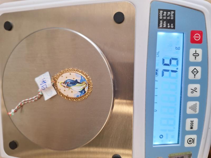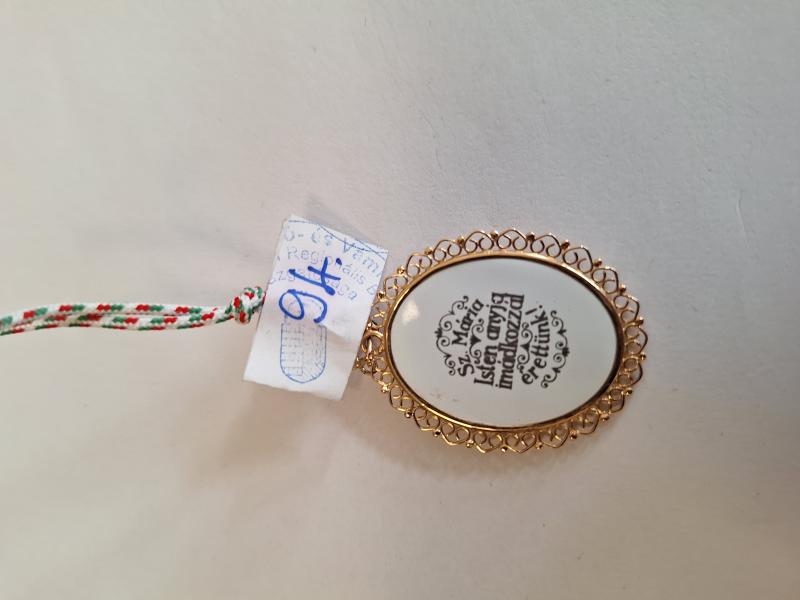 1 db 585 ‰ (14 karát) finomságú aranyötvözetből készült,keretben lévő Szűz Mária porcelán medál. 1966 és 1999 közötti szabályos magyar fémjelzéssel ellátva. Aranytárgynak minősül. Forgalomképes állapotban. Az ingóság MEGTEKINTÉSE az árverésen történő részvétel előtt a meghirdetett időpontban ajánlott.Az elárverezett vagyontárgyakért sem az adós,sem az adóhatóság jótállással nem tartozik,felelősséget nem vállal.A megtekintés során a résztvevők által nem észlelt vagy fel nem ismerhető rejtett hibákért,a vagyontárgy esetlegesen előforduló vélt vagy valós hiányosságaiért az adóhatóság felelősséget nem vállal.