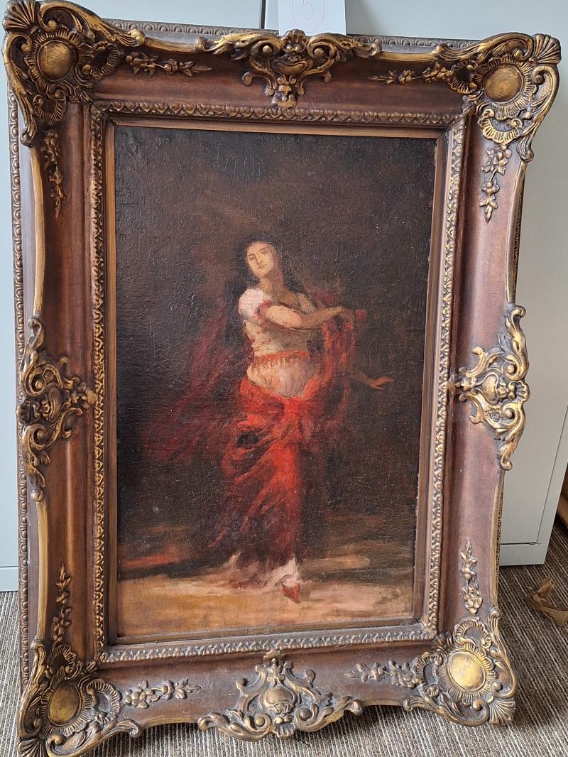 Székely Bertalan (1835-1910): Pirosruhás nőalak (vázlat) o.v., 59x82 cm, j.n. Kerettel együtt a mérete: 59x82 cm Anyaga: olaj, vászon Az ingóság MEGTEKINTÉSE az árverésen történő részvétel előtt a meghirdetett időpontban ajánlott.Az elárverezett vagyontárgyakért sem az adós,sem az adóhatóság jótállással nem tartozik,felelősséget nem vállal.A megtekintés során a résztvevők által nem észlelt vagy fel nem ismerhető rejtett hibákért,a vagyontárgy esetlegesen előforduló vélt vagy valós hiányosságaiért az adóhatóság felelősséget nem vállal.