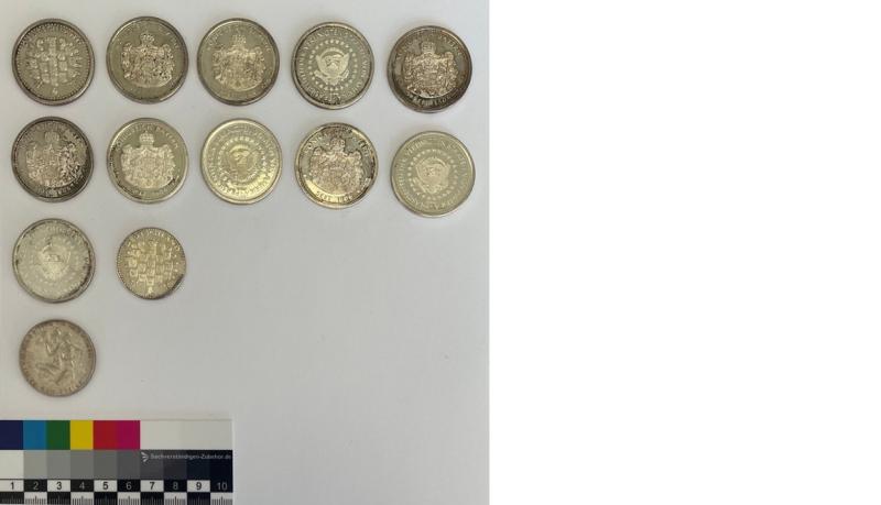 13 db német díszpénz - 1. 35,42 mm; 1,93 mm; 14,87 g; 2. 35,28 mm; 1,94 mm;14,70 g 3. 35,31 mm; 1,98 mm; 14,70 g 4. 35,14 mm; 1,80 mm; 15,00g 5. 35,28mm; 2,05 mm; 14,81 g 6. 35,14 mm;1,89 mm; 14,82 g 7. 35,21 mm; 1,95 mm; 15,00 g 8. 35,18 mm; 1,77 mm; 15,00 g 9. 35,18 mm; 1,86 mm; 14,83 g 10. 35,16 mm; 1,76 mm; 15,06 g 11. 35,14mm; 1,72 mm; 15,10 g 12. 30,13 mm; 1,49mm; 8,41 g 13. 32,59 mm; 2,02 mm; 15,59 g Az ingóság MEGTEKINTÉSE az árverésen történő részvétel előtt a meghirdetett időpontban ajánlott.Az elárverezett vagyontárgyakért sem az adós,sem az adóhatóság jótállással nem tartozik,felelősséget nem vállal.A megtekintés során a résztvevők által nem észlelt vagy fel nem ismerhető rejtett hibákért,a vagyontárgy esetlegesen előforduló vélt vagy valós hiányosságaiért az adóhatóság felelősséget nem vállal.