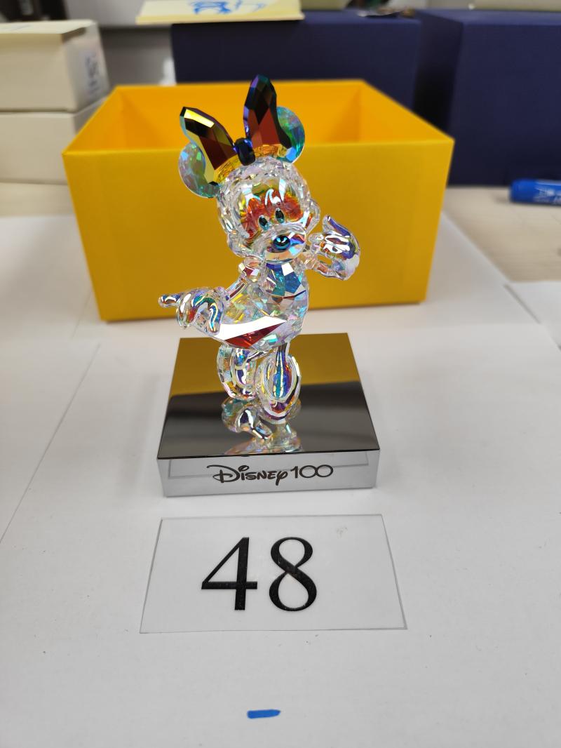 Swarovski Disney figura Donald Kacsa; Cikkszám: 5658474 (sérüt,törött), Minnie egér; Cikkszám: 5658476 (új) Felhívom a licitálók figyelmét, hogy az ingóságok megtekintésén lehetőleg vegyenek részt, mert az ingóságok, esetleges hibái, sérülései a feltöltött fényképek alapján maradéktalanul nem észlelhetők. Az elárverezett vagyontárgyakért sem az adós, sem az adóhatóság jótállással nem tartozik. A megtekintés során a résztvevők által nem észlelt vagy fel nem ismerhető rejtett hibákért, a vagyontárgy esetlegesen előforduló vélt vagy valós hiányosságaiért az adóhatóság felelősséget nem vállal.