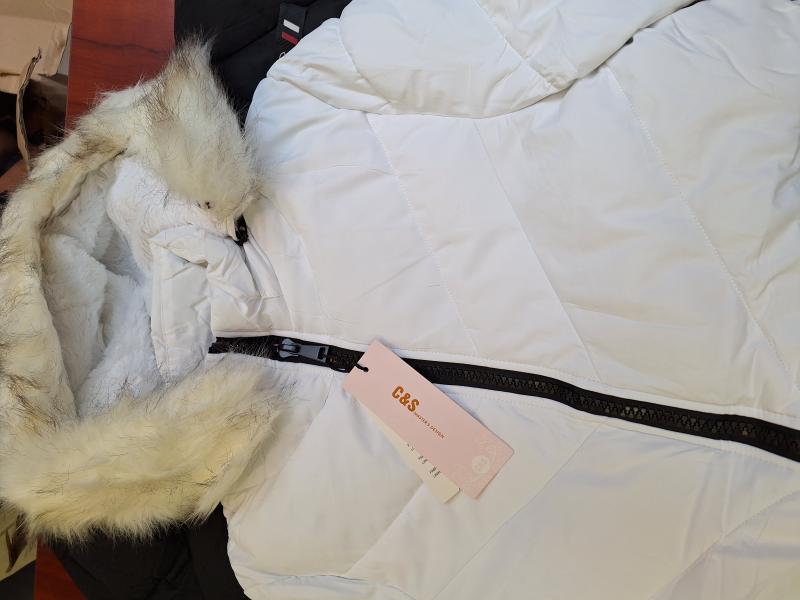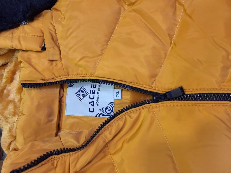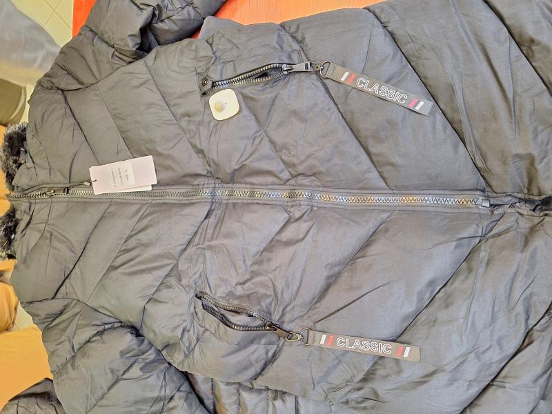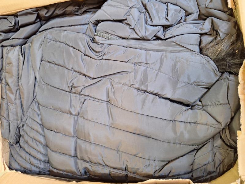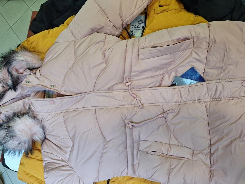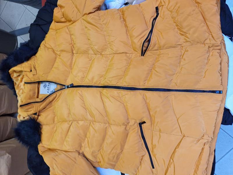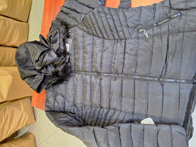 9 db női téli kabát vegyesen, különböző szín és méret.