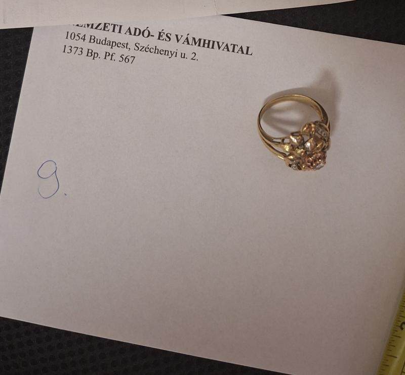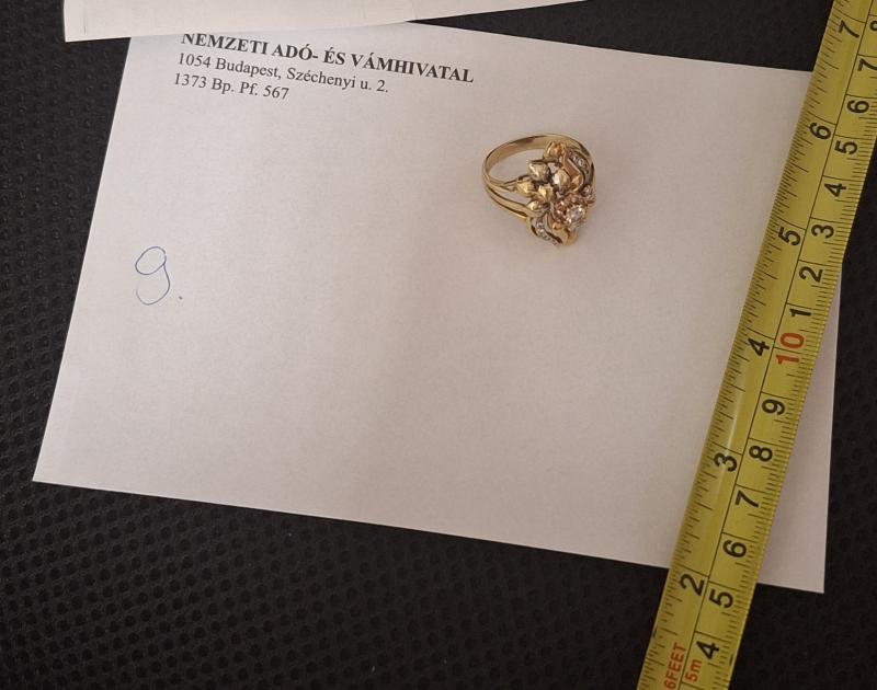 1db Arany gyűrű. 14karát. 8,8gramm. Fémjelzett. Az ingóság becsértékét szakértő-becsüs, a dolog jellemző tulajdonságainak, állapotának megfelelően a forgalmi értéket figyelembe véve határozta meg, ugyanakkor a hirdetmény nem biztosítja az ingóság tulajdonságainak teljes körű ismertetését. Az elárverezett vagyontárgyért sem az adós, sem a NAV jótállással nem tartozik. Az ingóság személyes megtekintésére az adóhatóság lehetőséget biztosít. Az ingósággal kapcsolatos egyéb információkról, paraméterekről, esetlegesen előforduló nem észlelt hiányosságokról kapcsolatban a megadott megtekintés időpontjában bárki tájékozódhat. A megtekintés során a résztvevők által nem észlelt vagy fel nem ismerhető rejtett hibákért, a vagyontárgy esetlegesen előforduló vélt vagy valós hiányosságaiért az adós, valamint az adóhatóság felelősséget nem vállal. Az ingóság MEGTEKINTÉSE az árverésen történő részvétel előtt a MEGHIRDETETT IDŐPONTBAN AJÁNLOTT! Az árverés tárgyát képező és az árverés kiírásban megnevezett tételen kívül a fotókon akár részben akár egészben látható egyéb tárgyak nem képezik az árverés részét. A fenti adatok és az ingóságról készült képfelvételek tájékoztató jellegűek! Sikeres árverés esetén az ingóság nyertes licitáló részére történő átadása, előre telefonon egyeztetett időpontban történik. Az árverési jegyzőkönyvet a Nemzeti Adó- és Vámhivatal Szabolcs-Szatmár-Bereg Megyei Adó- és Vámigazgatósága Végrehajtási Osztály 3. lehet átvenni.