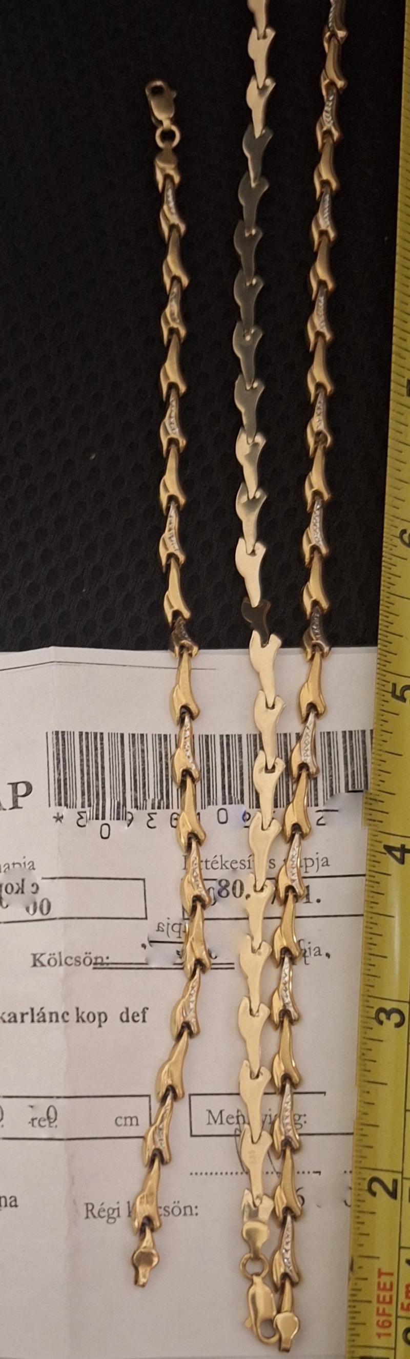 1db Arany karlánc és 1db aranylánc. A kettő együtt 14gramm. 14karát. Fémjelezett.Az ingóság becsértékét szakértő-becsüs, a dolog jellemző tulajdonságainak, állapotának megfelelően a forgalmi értéket figyelembe véve határozta meg, ugyanakkor a hirdetmény nem biztosítja az ingóság tulajdonságainak teljes körű ismertetését. Az elárverezett vagyontárgyért sem az adós, sem a NAV jótállással nem tartozik. Az ingóság személyes megtekintésére az adóhatóság lehetőséget biztosít. Az ingósággal kapcsolatos egyéb információkról, paraméterekről, esetlegesen előforduló nem észlelt hiányosságokról kapcsolatban a megadott megtekintés időpontjában bárki tájékozódhat. A megtekintés során a résztvevők által nem észlelt vagy fel nem ismerhető rejtett hibákért, a vagyontárgy esetlegesen előforduló vélt vagy valós hiányosságaiért az adós, valamint az adóhatóság felelősséget nem vállal. Az ingóság MEGTEKINTÉSE az árverésen történő részvétel előtt a MEGHIRDETETT IDŐPONTBAN AJÁNLOTT! Az árverés tárgyát képező és az árverés kiírásban megnevezett tételen kívül a fotókon akár részben akár egészben látható egyéb tárgyak nem képezik az árverés részét. A fenti adatok és az ingóságról készült képfelvételek tájékoztató jellegűek! Sikeres árverés esetén az ingóság nyertes licitáló részére történő átadása, előre telefonon egyeztetett időpontban történik. Az árverési jegyzőkönyvet a Nemzeti Adó- és Vámhivatal Szabolcs-Szatmár-Bereg Megyei Adó- és Vámigazgatósága Végrehajtási Osztály 3. lehet átvenni.