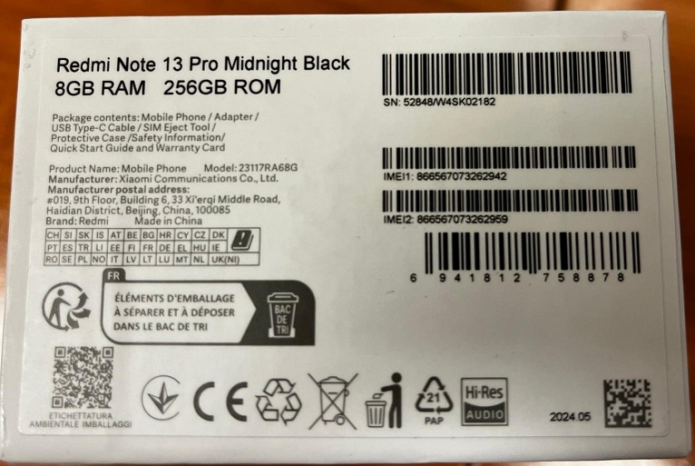 | Elemi részek | Redmi Note13 Pro mobiltelefon. 256Gb. Midnight Black. imei.. 866567073262942. bsz.: B200001708644. kn.: 8517 Bontatlan gyári csomagolás. Előzetes értékesítés, számla nem kerül kiállításra. Megtekintéskor a gyári csomagolás nem kerül kibontásra A hirdetmény nem biztosítja az ingóság tulajdonságainak teljes körű ismertetését. A képek csak tájékoztató jellegűek! Az elárverezett tárgyakért a NAV jótállással nem tartozik, a megtekintés során a résztvevők által nem észlelt vagy fel nem ismert rejtett hibákért, a vagyontárgy esetlegesen előforduló vélt vagy valós hiányosságaiért az adóhatóság felelősséget nem vállal. Az ingóság MEGTEKINTÉSE az árverésen történő részvétel előtt a MEGHIRDETETT IDŐPONTBAN AJÁNLOTT! FIGYELMEZTETÉS! A megtekintésen való részvételhez előzetes regisztráció szükséges a bfig.kmlro@nav.gov.hu e-mail címen a megtekintő nevének, személyi igazolvány számának, illetve a megtekinteni kívánt tétel árverési sorszámának megadásával. Érdeklődni Demeter-Kovács Erzsébet törzszászlós. 06-1-550-1187. |