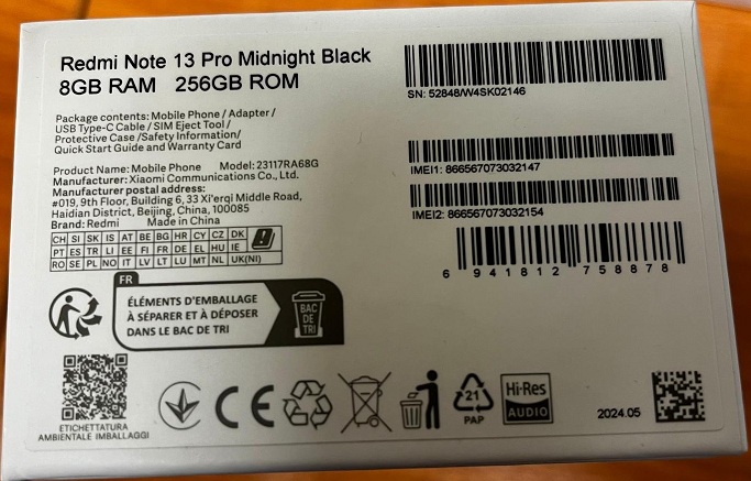 | Elemi részek | Redmi Note 13 Pro mobiltelefon. Midnight Black. 256Gb. imei.: 866567073032147. bsz.: 200001708693. kn.: 8517. B200011708442 Bontatlan gyári csomagolás. Előzetes értékesítés, számla nem kerül kiállításra. Megtekintéskor a gyári csomagolás nem kerül kibontásra A hirdetmény nem biztosítja az ingóság tulajdonságainak teljes körű ismertetését. A képek csak tájékoztató jellegűek! Az elárverezett tárgyakért a NAV jótállással nem tartozik, a megtekintés során a résztvevők által nem észlelt vagy fel nem ismert rejtett hibákért, a vagyontárgy esetlegesen előforduló vélt vagy valós hiányosságaiért az adóhatóság felelősséget nem vállal. Az ingóság MEGTEKINTÉSE az árverésen történő részvétel előtt a MEGHIRDETETT IDŐPONTBAN AJÁNLOTT! FIGYELMEZTETÉS! A megtekintésen való részvételhez előzetes regisztráció szükséges a bfig.kmlro@nav.gov.hu e-mail címen a megtekintő nevének, személyi igazolvány számának, illetve a megtekinteni kívánt tétel árverési sorszámának megadásával. Érdeklődni Demeter-Kovács Erzsébet törzszászlós. 06-1-550-1187. |