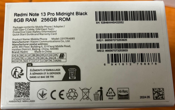 | Elemi részek | Redmi Note 13 Pro mobiltelefon. 256Gb. Midnight black. imei.: 1:866567073253925. bsz.: B200001708708. kn.: 8517. Bontatlan gyári csomagolás. Előzetes értékesítés, számla nem kerül kiállításra. Megtekintéskor a gyári csomagolás nem kerül kibontásra A hirdetmény nem biztosítja az ingóság tulajdonságainak teljes körű ismertetését. A képek csak tájékoztató jellegűek! Az elárverezett tárgyakért a NAV jótállással nem tartozik, a megtekintés során a résztvevők által nem észlelt vagy fel nem ismert rejtett hibákért, a vagyontárgy esetlegesen előforduló vélt vagy valós hiányosságaiért az adóhatóság felelősséget nem vállal. Az ingóság MEGTEKINTÉSE az árverésen történő részvétel előtt a MEGHIRDETETT IDŐPONTBAN AJÁNLOTT! FIGYELMEZTETÉS! A megtekintésen való részvételhez előzetes regisztráció szükséges a bfig.kmlro@nav.gov.hu e-mail címen a megtekintő nevének, személyi igazolvány számának, illetve a megtekinteni kívánt tétel árverési sorszámának megadásával. Érdeklődni Demeter-Kovács Erzsébet törzszászlós. 06-1-550-1187. |