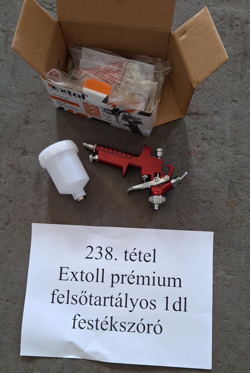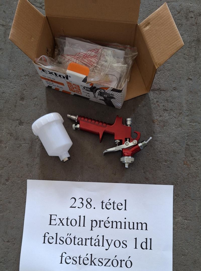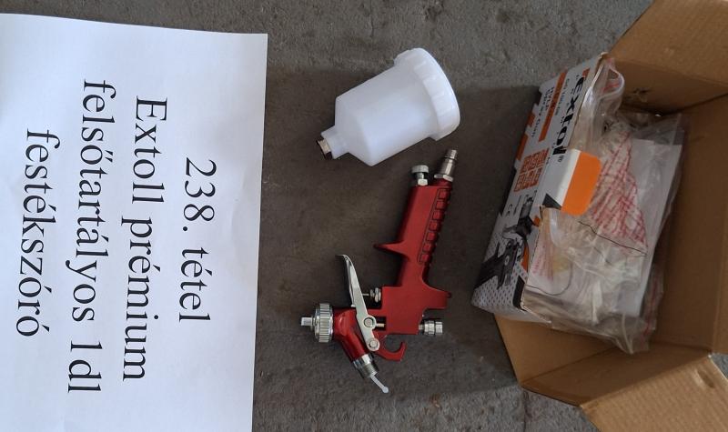 EXTOL gyártmányú prémium felsőtartályos 1dl-es festékszóró. FELHÍVOM FIGYELMÉT, HOGY AZ ÁRU KIADÁSRA MINDEN PÉNTEKEN 10:00-TÓL 12:00-IG VAN LEHETŐSÉG! Az adatokat a megtekintés során bárki leellenőrizheti saját felelősségére. Az elárverezett vagyontárgyért sem az adós, sem a NAV jótállással nem tartozik Az ingóság becsértékét az adóhatóság megfelelő szakértelemmel rendelkező végrehajtói a dolog jellemző tulajdonságainak, állapotának megfelelően a forgalmi értéket figyelembe véve határozzák meg, ugyanakkor a hirdetmény nem biztosítja az ingóság tulajdonságainak teljes körű ismertetését. Az ingóság személyes megtekintésére az adóhatóság lehetőséget biztosít. Az ingósággal kapcsolatos egyéb információkról, paraméterekről, esetlegesen előforduló nem észlelt hiányosságokról kapcsolatban a megadott megtekintés időpontjában bárki tájékozódhat. A megtekintés során a résztvevők által nem észlelt vagy fel nem ismerhető rejtett hibákért, a vagyontárgy esetlegesen előforduló vélt vagy valós hiányosságaiért az adós, valamint az adóhatóság felelősséget nem vállal. Az ingóság MEGTEKINTÉSE az árverésen történő részvétel előtt a MEGHIRDETETT IDŐPONTBAN AJÁNLOTT! Az árverés tárgyát képező és az árverés kiírásban megnevezett tételen kívül a fotókon akár részben akár egészben látható egyéb tárgyak nem képezik az árverés részét. A fenti adatok és az ingóságról készült képfelvételek tájékoztató jellegűek! SIKERES ÁRVERÉS ESETÉN AZ INGÓSÁG NYERTES LICITÁLÓ RÉSZÉRE TÖRTÉNŐ ÁTADÁSA, ELŐRE TELEFONON EGYEZTETETT IDŐPONTBAN TÖRTÉNIK. AZ ÁRVERÉSI JEGYZŐKÖNYVET A NEMZETI ADÓ- ÉS VÁMHIVATAL SZABOLCS-SZATMÁR-BEREG MEGYEI ADÓ- ÉS VÁMIGAZGATÓSÁGA VÉGREHAJTÁSI OSZTÁLY 3. LEHET ÁTVENNI.
