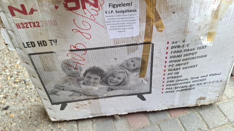 PANASONIC LED TV 81 cm-es képátló, fekete TX-32 A300 E távirányítóval - a távirányítóban elhasznált elemek láthatók. Nincs információ arról, hogy a tv új vagy használt. Kartondobozban van. A fotón látható repedésszerű dolog pókháló, a képernyő ép. Működőképességéről nincs információ. Az elárverezett vagyontárgyakért sem az adós, sem az adóhatóság jótállással nem tartozik. A megtekintés során a résztvevők által nem észlelt, vagy a fel nem ismerhető rejtett hibákért, a vagyontárgy esetlegesen előforduló vélt, vagy valós hiányosságaiért az adóhatóság felelősséget nem vállal. Az ingóságokat a megtekintés során bárki ellenőrizheti saját felelősségére.