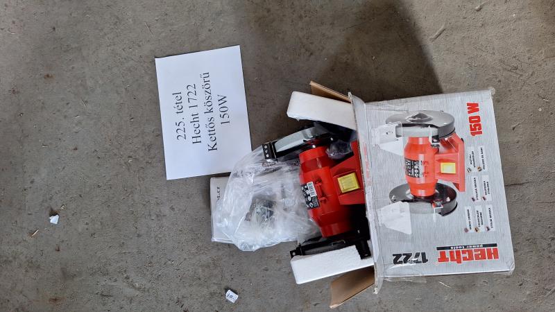 Hecht gyártmányú 1722-es kettős köszörű 150W-os. Típus: S/N 202300564 Azonosító száma:DG3215M. FELHÍVOM FIGYELMÉT, HOGY AZ ÁRU KIADÁSRA MINDEN PÉNTEKEN 10:00-TÓL 12:00-IG VAN LEHETŐSÉG! Az adatokat a megtekintés során bárki leellenőrizheti saját felelősségére. Az elárverezett vagyontárgyért sem az adós, sem a NAV jótállással nem tartozik Az ingóság becsértékét az adóhatóság megfelelő szakértelemmel rendelkező végrehajtói a dolog jellemző tulajdonságainak, állapotának megfelelően a forgalmi értéket figyelembe véve határozzák meg, ugyanakkor a hirdetmény nem biztosítja az ingóság tulajdonságainak teljes körű ismertetését. Az ingóság személyes megtekintésére az adóhatóság lehetőséget biztosít. Az ingósággal kapcsolatos egyéb információkról, paraméterekről, esetlegesen előforduló nem észlelt hiányosságokról kapcsolatban a megadott megtekintés időpontjában bárki tájékozódhat. A megtekintés során a résztvevők által nem észlelt vagy fel nem ismerhető rejtett hibákért, a vagyontárgy esetlegesen előforduló vélt vagy valós hiányosságaiért az adós, valamint az adóhatóság felelősséget nem vállal. Az ingóság MEGTEKINTÉSE az árverésen történő részvétel előtt a MEGHIRDETETT IDŐPONTBAN AJÁNLOTT! Az árverés tárgyát képező és az árverés kiírásban megnevezett tételen kívül a fotókon akár részben akár egészben látható egyéb tárgyak nem képezik az árverés részét. A fenti adatok és az ingóságról készült képfelvételek tájékoztató jellegűek! SIKERES ÁRVERÉS ESETÉN AZ INGÓSÁG NYERTES LICITÁLÓ RÉSZÉRE TÖRTÉNŐ ÁTADÁSA, ELŐRE TELEFONON EGYEZTETETT IDŐPONTBAN TÖRTÉNIK. AZ ÁRVERÉSI JEGYZŐKÖNYVET A NEMZETI ADÓ- ÉS VÁMHIVATAL SZABOLCS-SZATMÁR-BEREG MEGYEI ADÓ- ÉS VÁMIGAZGATÓSÁGA VÉGREHAJTÁSI OSZTÁLY 3. LEHET ÁTVENNI.