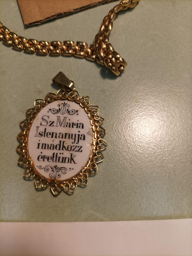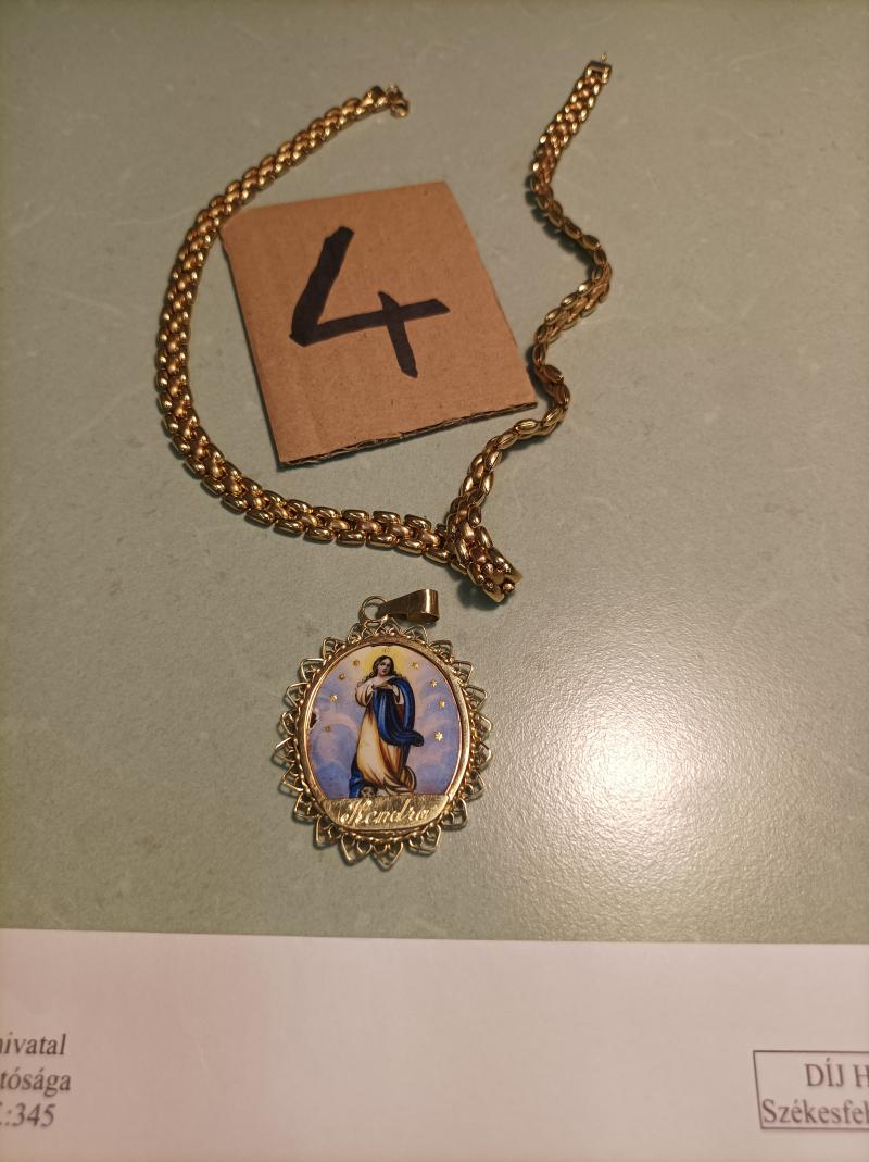 Megtekintés ajánlott! Kendra feliratú, Szűz Mária medállal ellátott 14k arany nyaklánc, a medál porcelán sérült, magyar fémjeles. Megtekintés helye: Bíróság épülete, 10 tárgyaló. A meghirdetett ingóságok megtekintését a megadott időpontban telefonos előre egyeztetés után tudjuk biztosítani! Telefonos bejelentkezés nélkül nem biztosítunk helyszíni megtekintést, ebből adódó félreértések vagy téves információkért az adóhatóság felelőséggel nem tartozik. Az ingósággal kapcsolatos egyéb információkról, paraméterekről, esetlegesen előforduló nem észlelt hiányosságokról a megadott megtekintés időpontjában bárki tájékozódhat. A megtekintés során a résztvevők által nem észlelt vagy fel nem ismerhető rejtett hibákért, a vagyontárgy esetlegesen előforduló vélt vagy valós hiányosságaiért az adós, valamint az adóhatóság felelősséget nem vállal. Tájékoztatjuk a Tisztelt árverésen résztvevőket, hogy a nyertes licitáló az ingóságot KIZÁRÓLAG keddi napokon 9 és 12 óra között veheti át a NAV hivatali helységében. Ettől eltérő időpontban az ingóság kiadására nincs lehetőség. Kérjük a nyertes licitálókat, hogy az ingóság, gépjármű elszállítására készüljenek fel. Vegyék figyelembe az ingóság/gépjármű méretét, mennyiségét, súlyát és állapotát, és ennek megfelelő szállító eszközzel, trélerrel, békával, raklappal, dobozokkal és rakodó személyzettel érkezzenek. A kiadást követően a vevő feladata a vagyontárgy felrakodása, elszállítása. Az ingóság paramétereivel és az elszállítás esetleges specialitásával kapcsolatban az árverést kiíró munkatárs telefonon tájékoztatást ad. Kérjük, hogy ezeket az információkat is vegyék számításba. Az árverési jegyzőkönyv aláírásával egyidejűleg a kiadás is megtörténik. Az ingóság megtekintésére az adóhatóság az árverési hirdetményben meghatározott időpontban biztosít lehetőséget. Javasoljuk az ingóságok árverés előtti megtekintését, a megtekintésen való részvételt, ugyanis az adóhatóság a rejtett, fényképeken nem látható hibákért felelősséget nem vállal. Továbbá az árverés lezárását követően megtekintésre nem biztosít lehetőséget. Az árverési vevő a licitált összeg megfizetését és a jegyzőkönyv aláírását követően kapja kézhez az ingóságot. Az ingóság megtekintésére az adóhatóság az árverési hirdetményben meghatározott időpontban biztosít lehetőséget. Javasoljuk az ingóságok árverés előtti megtekintését, a megtekintésen való részvételt, ugyanis az adóhatóság a rejtett, fényképeken nem látható hibákért felelősséget nem vállal. Továbbá az árverés lezárását követően megtekintésre nem biztosít lehetőséget. Kérjük a nyertes licitálókat, hogy az ingóság elszállítására készüljenek fel. Vegyék figyelembe az ingóság méretét, súlyát és állapotát, és ennek megfelelő szállító eszközzel és rakodó személyzettel érkezzenek. A kiadást követően a vevő feladata a vagyontárgy felrakodása, elszállítása.