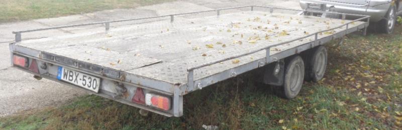 | Egyéb felszereltség, jellemzők | Közép-tengelyes pótkocsi, szürke színű. Össztömege: 3000 kg. |