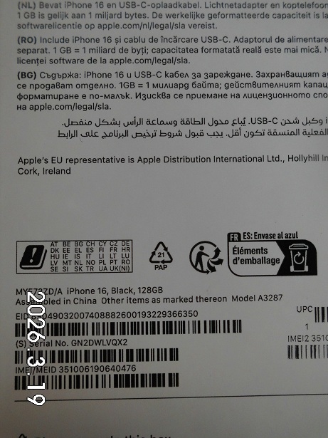 | Fajta, jelleg | 128 GB, IMEI: 351006190640476 |