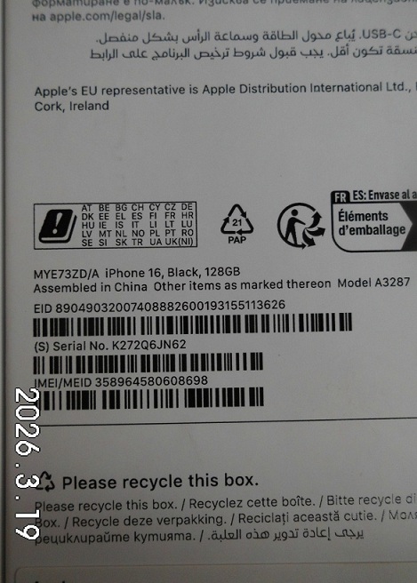 | Fajta, jelleg | 128 GB, IMEI: 358964580608698 |