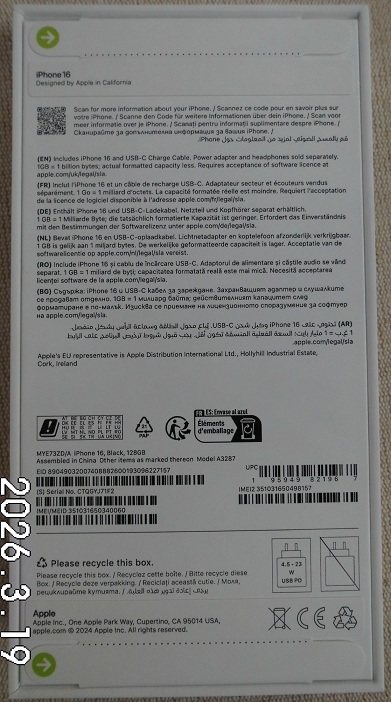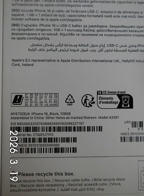 | Fajta, jelleg | 128 GB, IMEI: 351031650340060 |