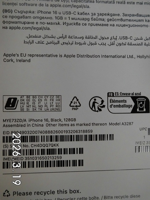 | Fajta, jelleg | 128 GB, IMEI: 351031650213259 |