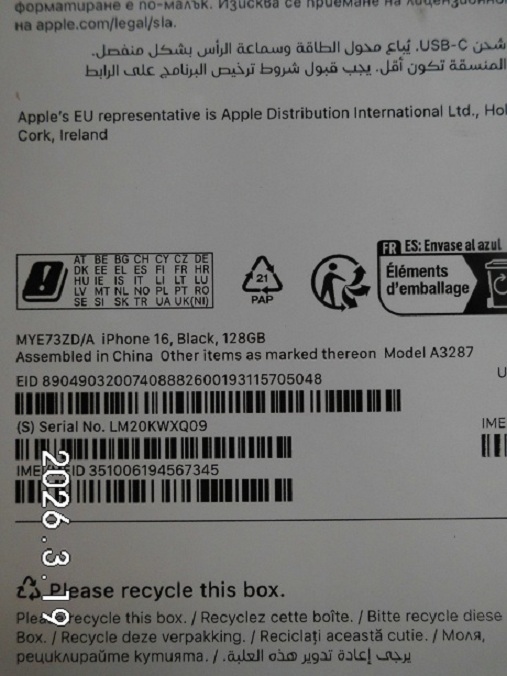 | Fajta, jelleg | 128 GB, IMEI: 351006194567345 |