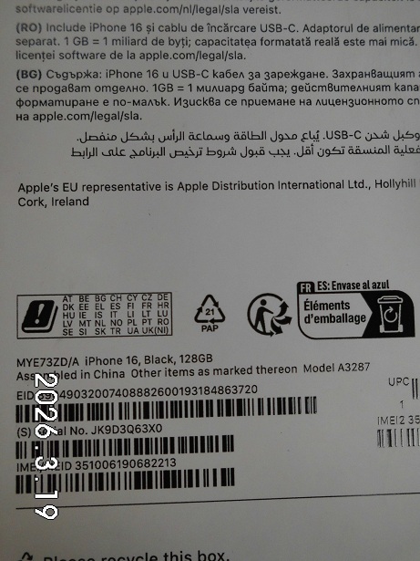 | Fajta, jelleg | 128 GB, IMEI: 351006190682213 |