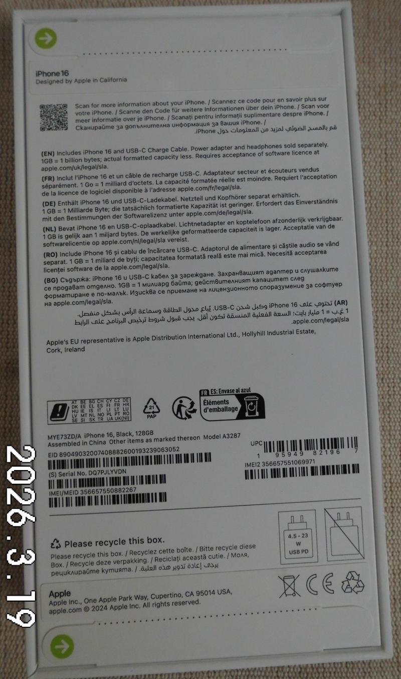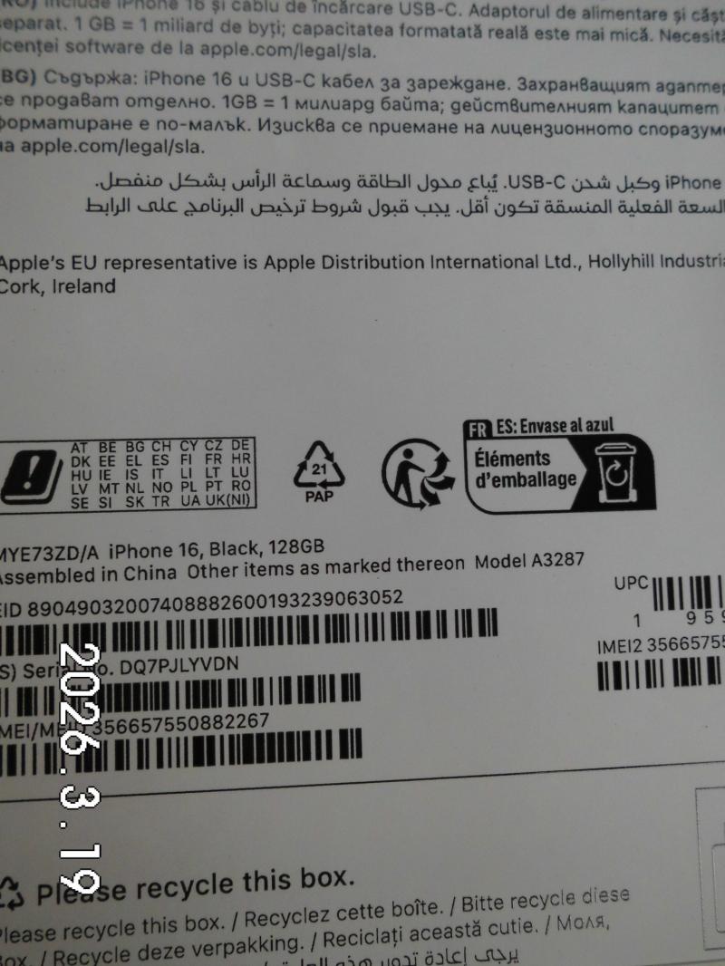 | Fajta, jelleg | 128 GB, IMEI: 356657550882267 |