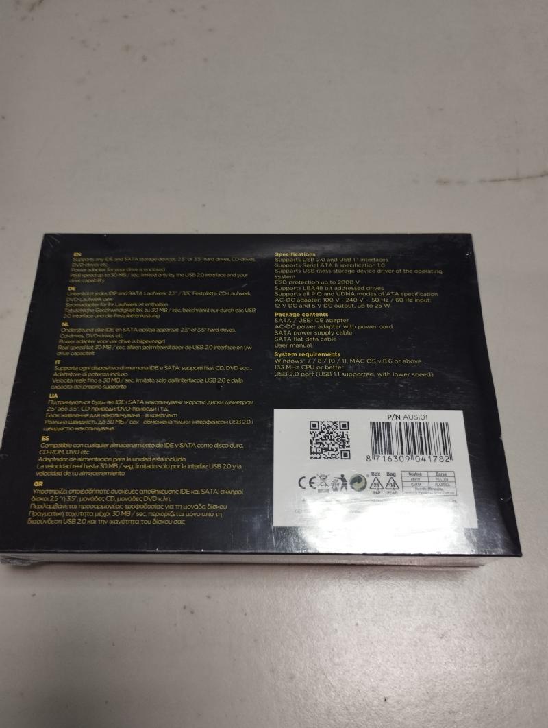 Cable Expert márkájú USB-IDE/SATA átalakító. Az ingóság MEGTEKINTÉSE az árverésen történő részvétel előtt a meghirdetett időpontban ajánlott.Az elárverezett vagyontárgyakért sem az adós,sem az adóhatóság jótállással nem tartozik,felelősséget nem vállal.A megtekintés során a résztvevők által nem észlelt vagy fel nem ismerhető rejtett hibákért,a vagyontárgy esetlegesen előforduló vélt vagy valós hiányosságaiért az adóhatóság felelősséget nem vállal.