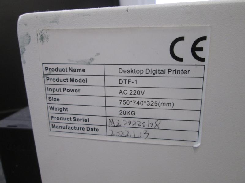 Desktop Digital Printer; patronnal; model: DFT-1; AC 220 V; súlya: 20 kg; szériaszám: MZ20220/08;DFT nyomtató; textilnyomtató; Az elárverezett vagyontárgyakért sem az adós, sem az adóhatóság jótállással nem tartozik. A megtekintés során a résztvevők által nem észlelt vagy fel nem ismerhető rejtett hibákért, a vagyontárgy esetlegesen előforduló vélt vagy valós hiányosságaiért az adóhatóság felelősséget nem vállal. Zálogjogi nyilvántartásban nem szerepel. A hirdetmény nem biztosítja az ingóság tulajdonságainak teljes körű ismertetését. A képek csak tájékoztató jellegűek! Az ingóságok átvétele az árverési vételár megfizetése után az ügyintézővel történő egyeztetés alapján előre meghatározott napon történik!