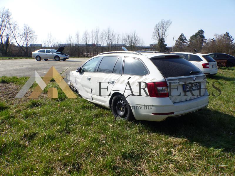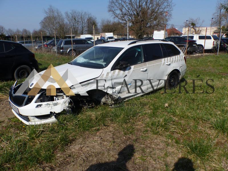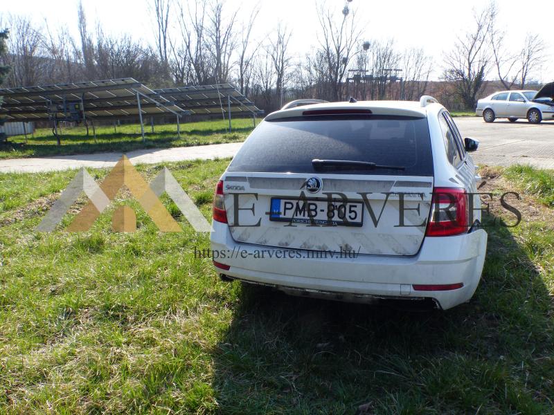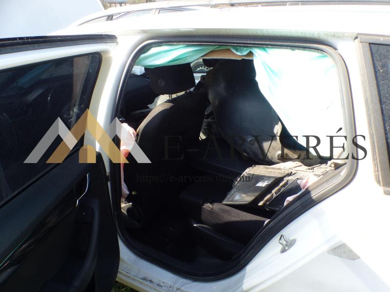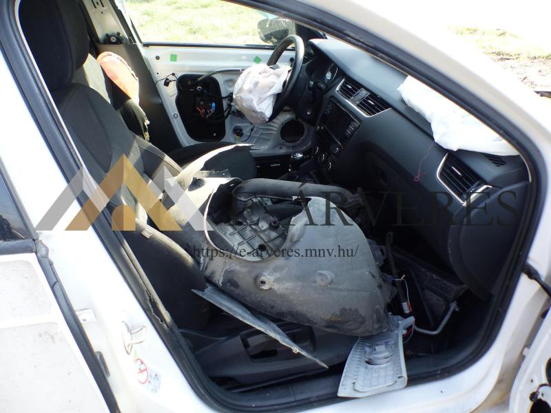 A gépjármű adatai: Típus: SKODA Octavia 1.4 TSI Combi Frsz.: PMB-805 Alvázszám: TMBJC9NE1J0172687 Kilóméter óra állás: 209.385 km Forgalomba helyezés időpontja: 201.11.23. Fényezés: Fehér Rendszeresen szervizelt. A gépjármű sérült, bontott, hiányos, üzemképtelen állapotban van Karosszéria állapota: Bal oldal sérült. Első futómű hiányzik. Utastér állapota: Kopott, elhasználódott, hiányos. Motor: Működésképtelen, hibás, a gépjárműből a sebességváltóval együtt kiszerelve.