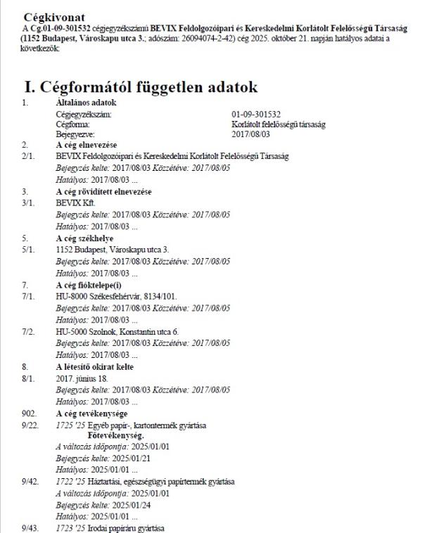 BEVIX Feldolgozóipari és Kereskedelmi Korlátolt Felelősségű Társaság Az árverés során adós vagyoni részesedése (üzletrésze) kerül árverésre!