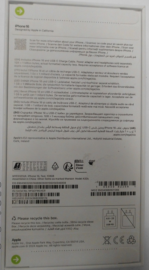 | Fajta, jelleg | 128 GB, IMEI: 350343680999174 |