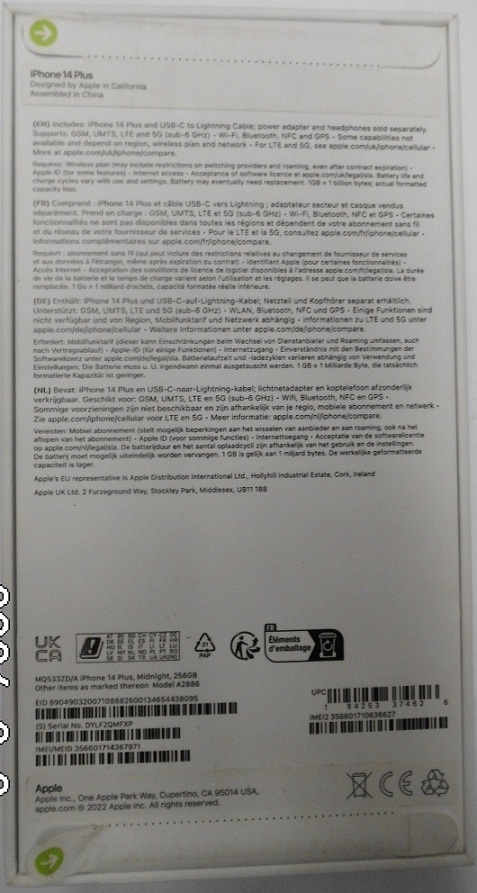 | Fajta, jelleg | 256 GB, IMEI: 356601714367971 |