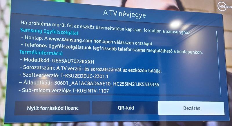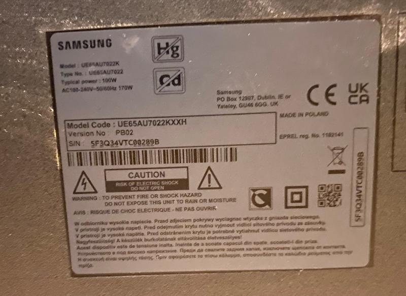 Samsung gyártmányú LED TV. Model Code: UE65AU7022KXXH, SN: 5F3Q34VTC00289B Tápkábel, távkapcsoló van. Talp nincs. Üzemképes. Az adatokat a megtekintés során bárki leellenőrizheti saját felelősségére. Az elárverezett vagyontárgyért sem az adós, sem a NAV jótállással nem tartozik. Az ingóság becsértékét az adóhatóság megfelelő szakértelemmel rendelkező végrehajtói a dolog jellemző tulajdonságainak, állapotának megfelelően a forgalmi értéket figyelembe véve határozzák meg, ugyanakkor a hirdetmény nem biztosítja az ingóság tulajdonságainak teljes körű ismertetését. Az elárverezett vagyontárgyért sem az adós, sem a NAV jótállással nem tartozik. Az ingóság személyes megtekintésére az adóhatóság lehetőséget biztosít. Az ingósággal kapcsolatos egyéb információkról, paraméterekről, esetlegesen előforduló nem észlelt hiányosságokról kapcsolatban a megadott megtekintés időpontjában bárki tájékozódhat. A megtekintés során a résztvevők által nem észlelt vagy fel nem ismerhető rejtett hibákért, a vagyontárgy esetlegesen előforduló vélt vagy valós hiányosságaiért az adós, valamint az adóhatóság felelősséget nem vállal. Az ingóság MEGTEKINTÉSE az árverésen történő részvétel előtt a MEGHIRDETETT IDŐPONTBAN AJÁNLOTT! Az árverés tárgyát képező és az árverés kiírásban megnevezett tételen kívül a fotókon akár részben akár egészben látható egyéb tárgyak nem képezik az árverés részét. A fenti adatok és az ingóságról készült képfelvételek tájékoztató jellegűek! Sikeres árverés esetén az ingóság nyertes licitáló részére történő átadása, előre telefonon egyeztetett időpontban történik. Az árverési jegyzőkönyvet a Nemzeti Adó- és Vámhivatal Szabolcs-Szatmár-Bereg Vármegyei Adó- és Vámigazgatósága Végrehajtási Osztály 3. lehet átvenni.