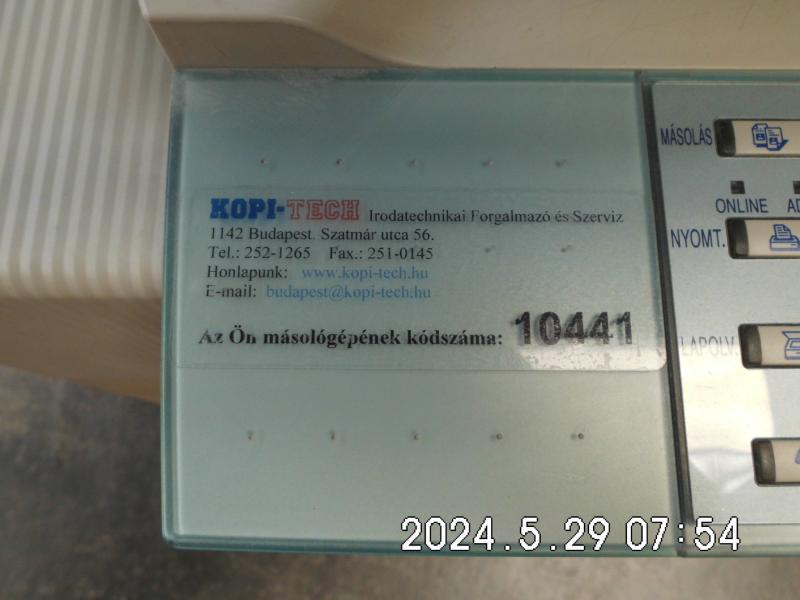 SHARP AR-275 DIGITAL, 2 oldalas, 2 tálcás nyomtató. Működőképességéről meggyőződni nem tudtunk. Felhívom a licitálók figyelmét, hogy az ingóságok megtekintésén lehetőleg vegyenek részt, mert az ingóságok, esetleges hibái, sérülései a feltöltött fényképek alapján maradéktalanul nem észlelhetők. Az elárverezett vagyontárgyakért sem az adós, sem az adóhatóság jótállással nem tartozik. A megtekintés során a résztvevők által nem észlelt vagy fel nem ismerhető rejtett hibákért, a vagyontárgy esetlegesen előforduló vélt vagy valós hiányosságaiért az adóhatóság felelősséget nem vállal.