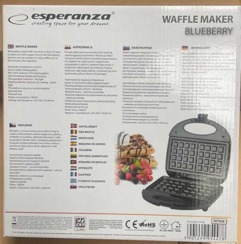 2 db Esperanza Gofrisütő 1000w Blueberry Előzetes értékesítés, számla nem kerül kiállításra. A hirdetmény nem biztosítja az ingóság tulajdonságainak teljes körű ismertetését. A képek csak tájékoztató jellegűek! Az elárverezett tárgyakért a NAV jótállással nem tartozik, a megtekintés során a résztvevők által nem észlelt vagy fel nem ismert rejtett hibákért, a vagyontárgy esetlegesen előforduló vélt vagy valós hiányosságaiért az adóhatóság felelősséget nem vállal.
