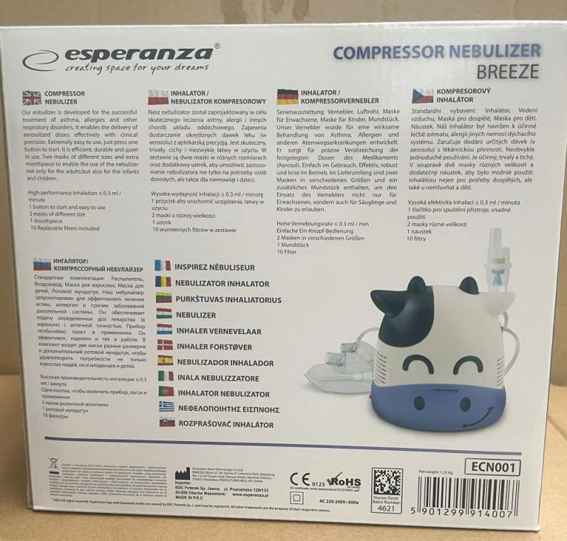 1 db Esperanza Compression Nebulizer Breeze I Előzetes értékesítés, számla nem kerül kiállításra. A hirdetmény nem biztosítja az ingóság tulajdonságainak teljes körű ismertetését. A képek csak tájékoztató jellegűek! Az elárverezett tárgyakért a NAV jótállással nem tartozik, a megtekintés során a résztvevők által nem észlelt vagy fel nem ismert rejtett hibákért, a vagyontárgy esetlegesen előforduló vélt vagy valós hiányosságaiért az adóhatóság felelősséget nem vállal.
