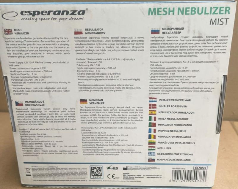 1 db Esperanza Mesh Nebulizer Mist Előzetes értékesítés, számla nem kerül kiállításra. A hirdetmény nem biztosítja az ingóság tulajdonságainak teljes körű ismertetését. A képek csak tájékoztató jellegűek! Az elárverezett tárgyakért a NAV jótállással nem tartozik, a megtekintés során a résztvevők által nem észlelt vagy fel nem ismert rejtett hibákért, a vagyontárgy esetlegesen előforduló vélt vagy valós hiányosságaiért az adóhatóság felelősséget nem vállal.
