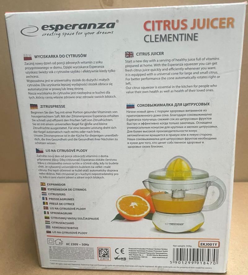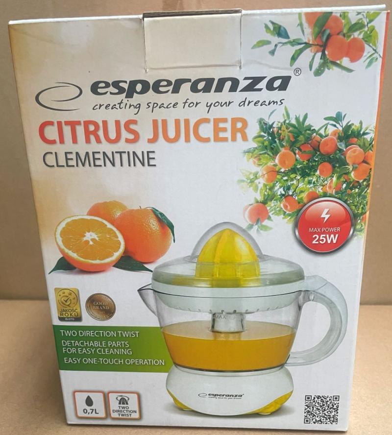 2 db Esperanza Citrus Juicer Előzetes értékesítés, számla nem kerül kiállításra. A hirdetmény nem biztosítja az ingóság tulajdonságainak teljes körű ismertetését. A képek csak tájékoztató jellegűek! Az elárverezett tárgyakért a NAV jótállással nem tartozik, a megtekintés során a résztvevők által nem észlelt vagy fel nem ismert rejtett hibákért, a vagyontárgy esetlegesen előforduló vélt vagy valós hiányosságaiért az adóhatóság felelősséget nem vállal.