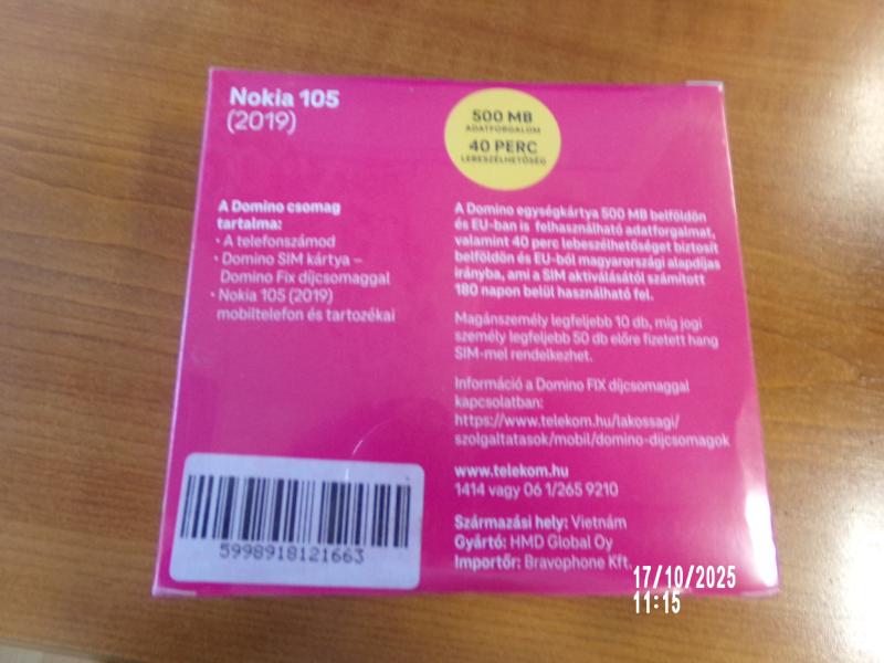 DOMINO NOKIA 105 (2019) kártya független készülék gyári csomagolású új, sim kártyával Az elárverezett vagyontárgyakért sem az adós, sem az adóhatóság jótállással nem tartozik. A megtekintés során a résztvevők által nem észlelt vagy fel nem ismerhető rejtett hibákért, a vagyontárgy esetlegesen előforduló vélt vagy valós hiányosságaiért az adóhatóság felelősséget nem vállal.