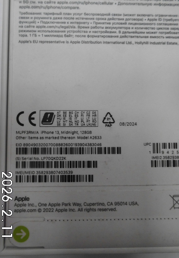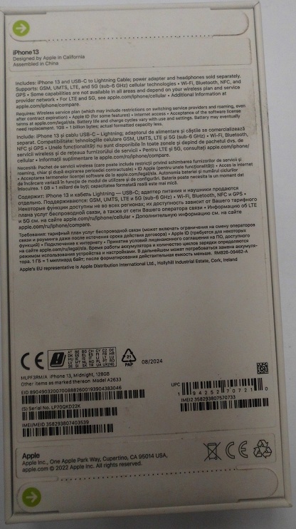 | Fajta, jelleg | 128 GB, IMEI: 358293807403539 |