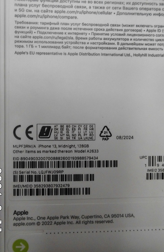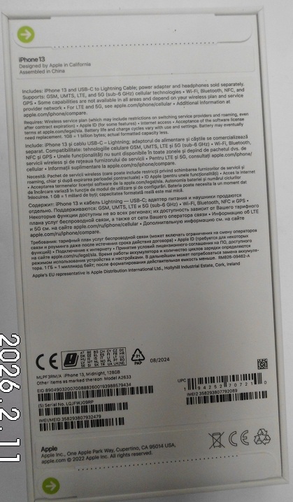 | Fajta, jelleg | 128 GB, IMEI: 358293807932479 |