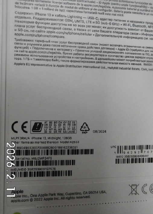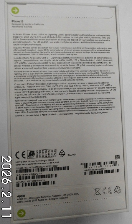 | Fajta, jelleg | 128 GB, IMEI: 358293809197576 |